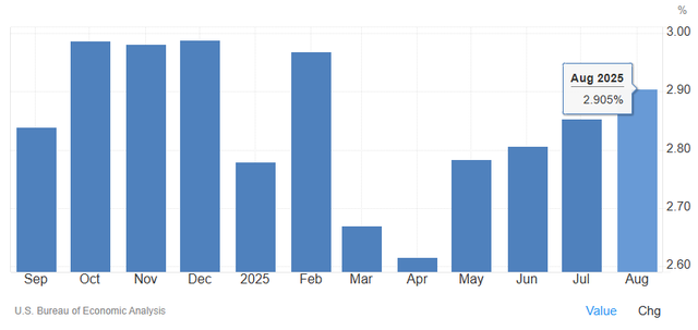 通胀仍然是一个关键问题。在政府停摆前,美联储偏爱的通胀指标——核心个人消费支出(PCE)价格指数为2.9%,仍远高于2%的目标。预计更高的关税将继续拖累经济增长并推高通胀。